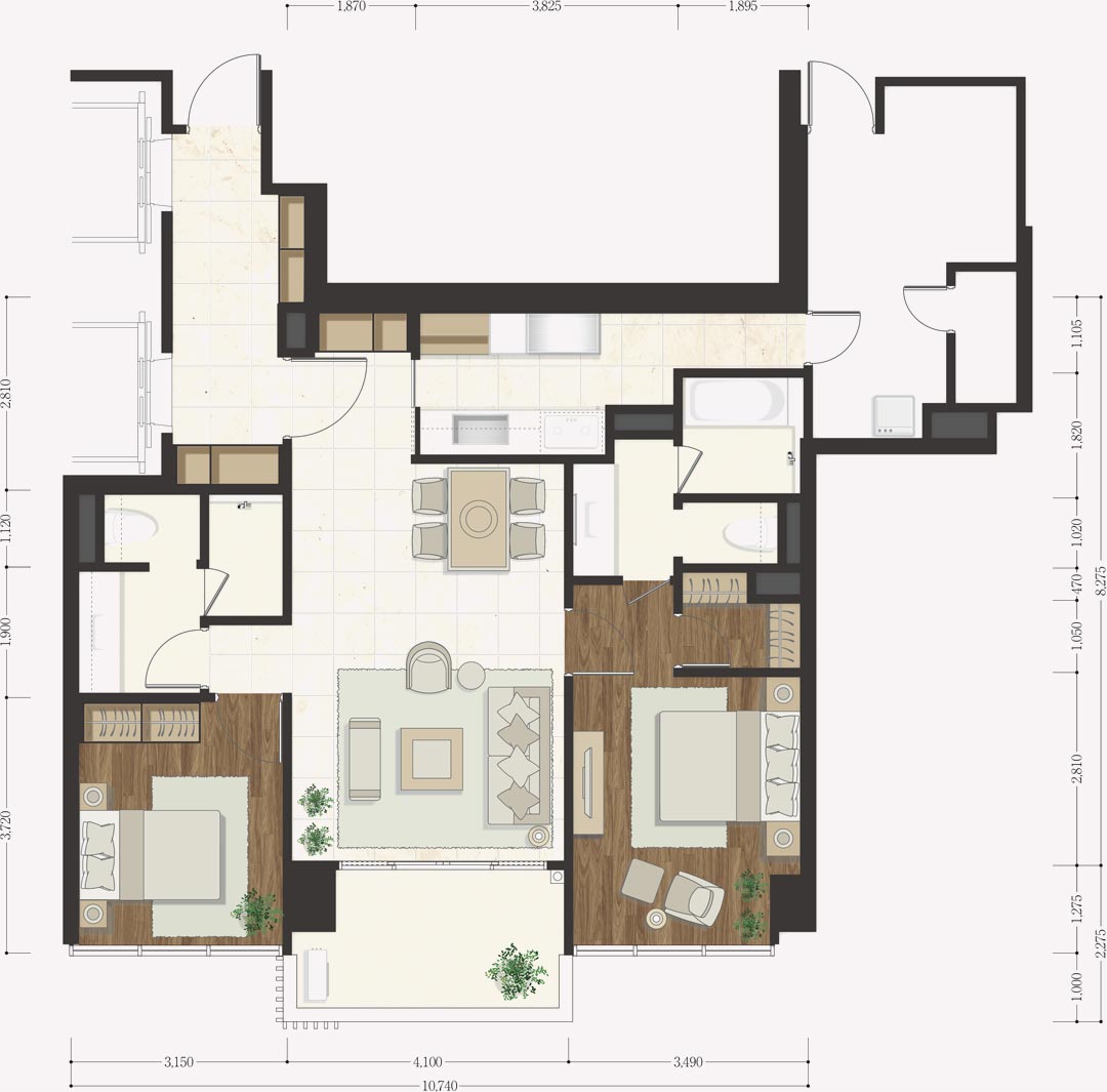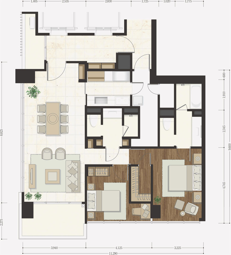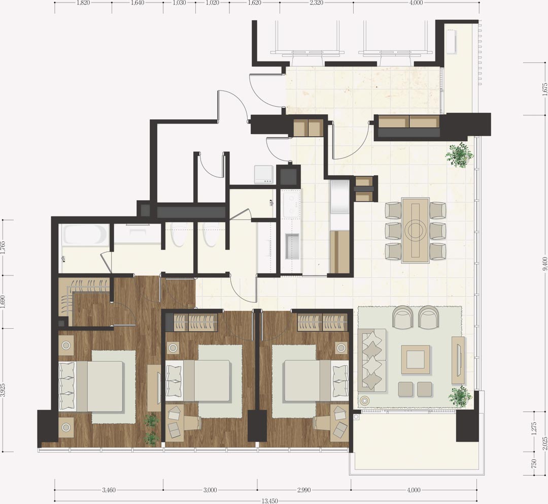 1bed:56m2 2bed: 125m2 3bed: 149m2 |
